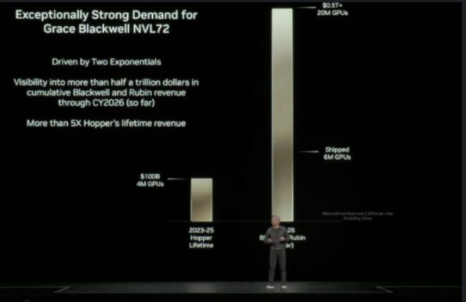 - Blackwell = 5x Hopper — Total Hopper sales were ~$100B while Nvidia’s current generation chip is expected to deliver $500B in sales, based on orders as of right now.